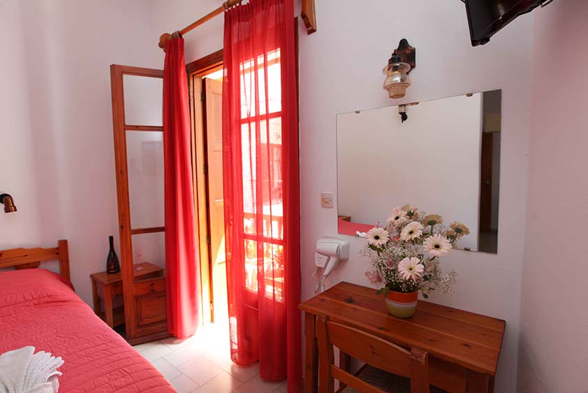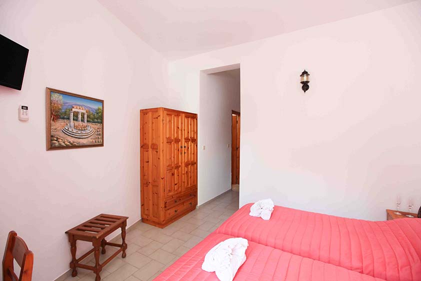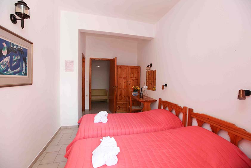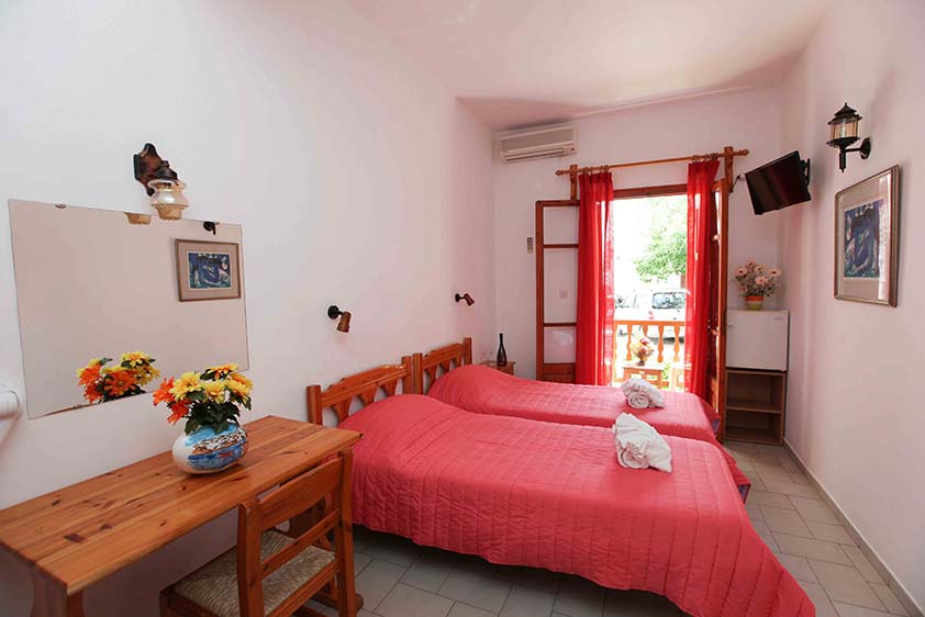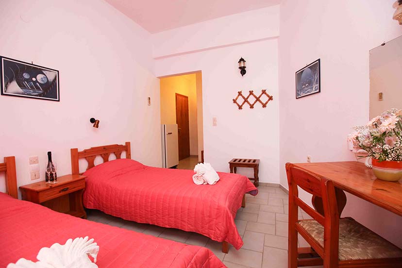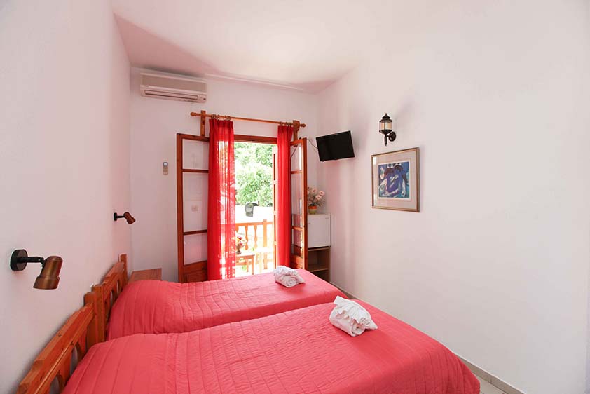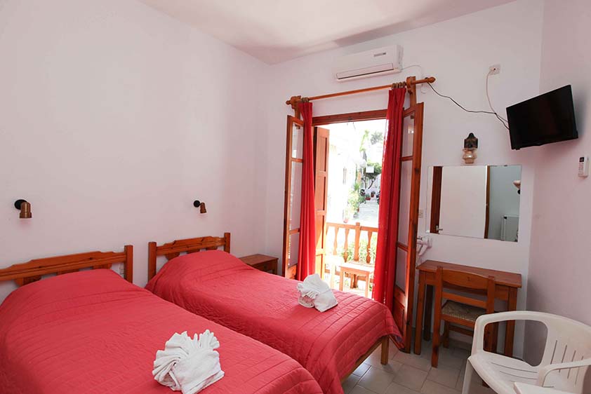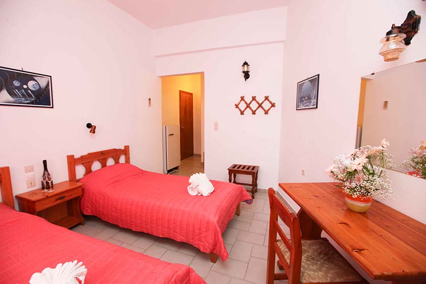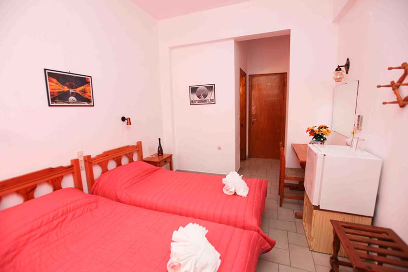 - Οικονομικό δίκλινο με δύο μονά κρεβάτια (υπάρχει η δυνατότητα να γίνει διπλό, βάζουμε latex στη μέση) με παράθυρο.