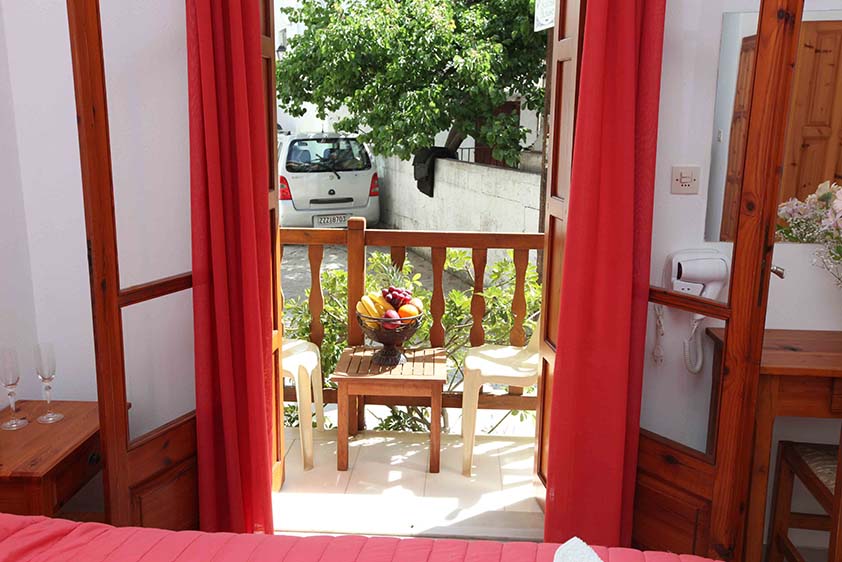 - Δίκλινο δωμάτιο με δύο μονά κρεβάτια (υπάρχει η δυνατότητα να γίνει διπλό, βάζουμε latex στη μέση) και μπαλκόνι.